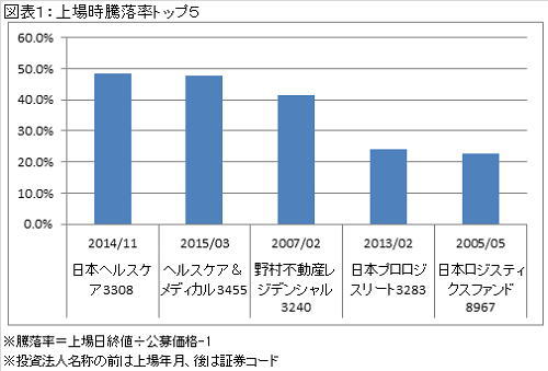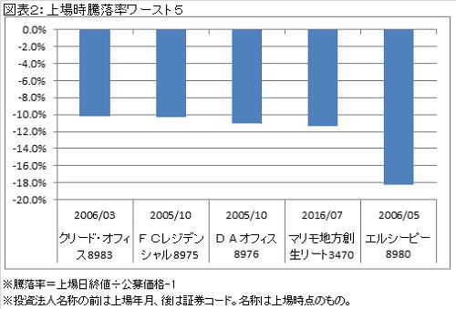 「図表1」には登場していませんが、住居系で最初の上場銘柄となった日本レジデンシャルや、ホテル系のジャパン・ホテル・アンド・リゾート(ともに合併により消滅)の上場時価格の上昇率も同時期に上場した他銘柄と比較すると高くなっています。