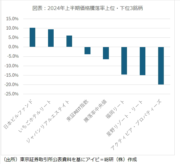 2. REIT2024年上半期の価格騰落率の2つの特徴