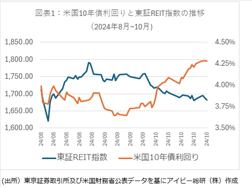 しかし直近の米国10年債利回りは2024年10月と比較して高い水準となっている中で、東証REIT指数は1,700ポイント台を維持している状態となっている。