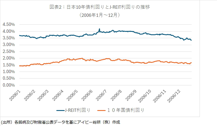 直近で国債利回りが1.5%を超えて推移していた時期は、2006年まで遡ることになるが、図表2の通りJ-REITの利回りは平均で3.75%となっていた。