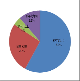 投資期間を「5年以上」とする割合が58%と最も高い点から、インカムゲインを目的とした長期投資とする位置付けがわかる。投資口価格が上昇した昨年と比べると9ポイント増加したが、2年前と比べると同水準に戻った点から見て、投資口価格の推移と投資期間に相関性があることがわかる。