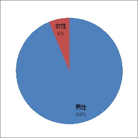 性別では、男性が94%を占め、昨年より3ポイント上昇。一方、女性の割合は未だかつて1割を超えたことがない。