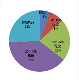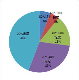 その一方、金融資産全体に占めるREIT投資額の割合は、昨年と変わらず「20%未満」とする割合が半分近くを占める。