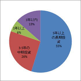 投資期間を「5年以上」とする割合が55%と昨年より3ポイント増加する一方、「1年以上」とする割合が3ポイント減少。J-REITを長期投資対象とする傾向が一段と強まっている。