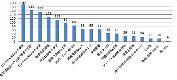 一方、「投資口価格の上昇」が大きく後退している点から、投資家がREITに安定性を期待していることが分かる。