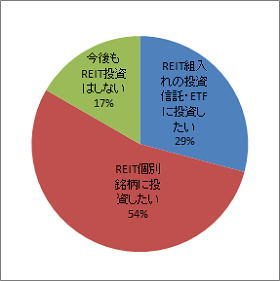 REIT投資の未経験者のうち、83%と高い割合がREITに投資したい意向を示しているが、「今後もREIT投資はしない」とする割合が昨年の7%から17%へ大きく上昇した。また「REIT個別銘柄」への投資希望は昨年の45%から54%へ上昇する一方、「REITの投資信託やETF」への投資希望は昨年の48%から29%へ大きく減少し、昨年から逆転する結果となった。