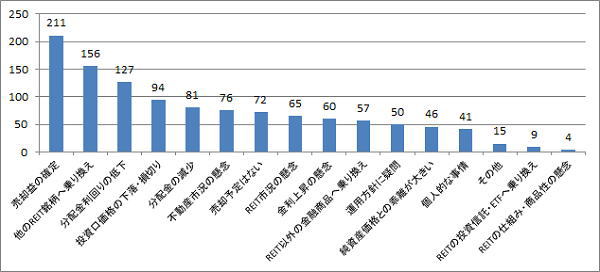 売却の要因として、REIT投資経験者の46%が「売却益の確定」を挙げ、昨年同様に最も多い。次に「他のREIT銘柄へ乗換え」「分配金利回りの低下」が続く点から、長期投資でインカムゲインを目的とするが、投資口価格が上昇すれば、利益を確定し、相対的に利回りの高い他のREIT銘柄へ乗り換える動きも想定される。