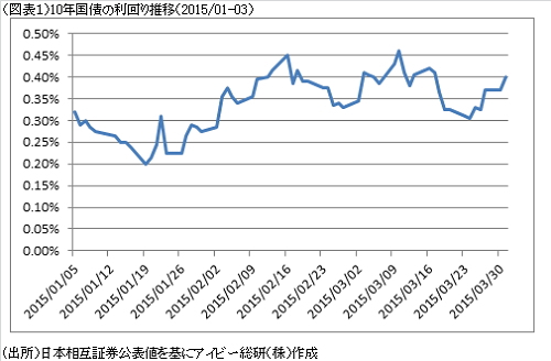 2015年に入ってからの国債利回りは「図表1」の通り1月19日まで順調に低下していましたが、その後は乱高下を経ながら上昇基調になっています。それに伴いJ-REITの利回りも上昇(価格は下落)しています。