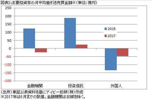 2017年の売買動向を月別に見ると、特に懸念が強い投資主体が投資信託です。
