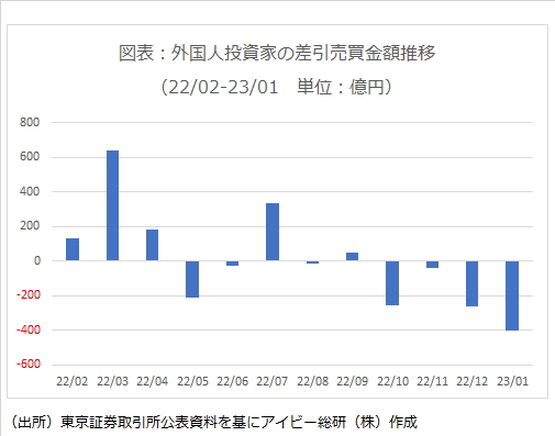前述の通り、外国人投資家は1月に大幅な売り越しを行っている。また米10年債利回りは、一時的ではあるが3.5%を下回る局面もあった。この背景には、米国の利上げが続くということだけなく、日銀が2022年12月に利上げを行ったことで日本の金融政策に不透明感が強まったこともあると考えられる。