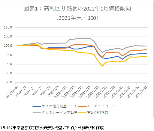 例えば、急落前の2021年12月末時点で利回りが高かった3銘柄の22年1月の価格動向は比較的堅調であった。