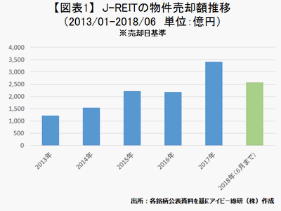 市場創設から初めて2017年に売却額が3,000億円を超えたが、2018年は6月末まで半年で2,500億円を超える金額となっている。